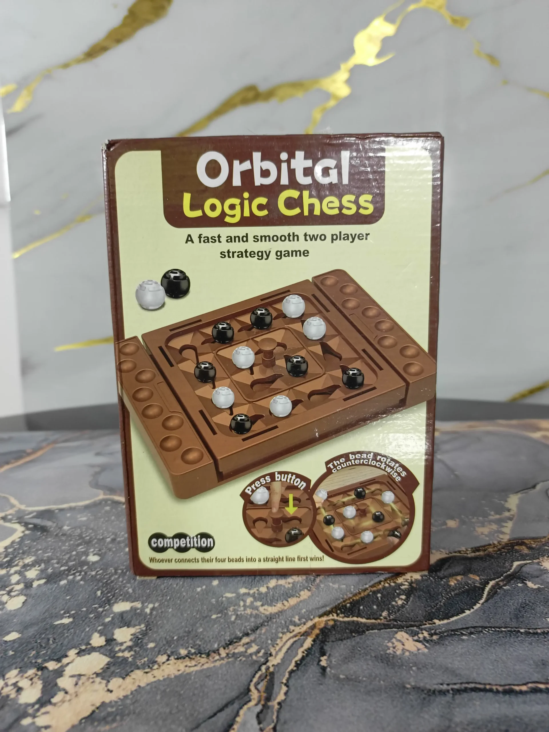 Al finalizar tu turno, debes presionar el tablero para que gire. Esta acción provoca que todas las bolitas se reubiquen, pasando a la siguiente posición en sentido horario, manteniendo su posición dentro de los dos carriles (el carril externo y el carril interno). La clave es: no es solo poner fichas, sino pensar cómo rotará el tablero. Debes calcular si tu ficha caerá en la posición deseada o si, al moverse a la siguiente cavidad, creará una línea para tu oponente. Este factor de anticipación a la rotación de los carriles eleva el juego a un nivel estratégico único.