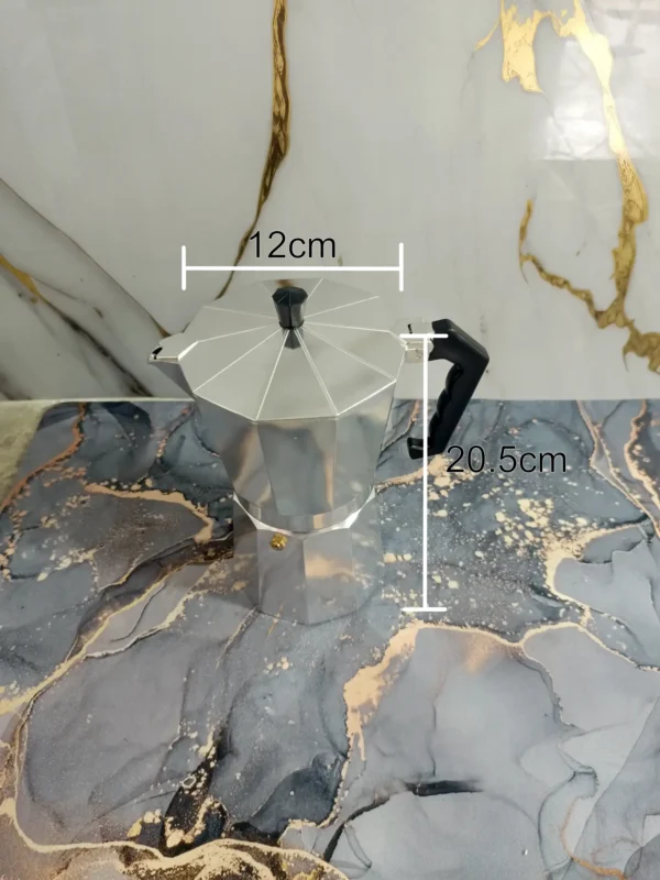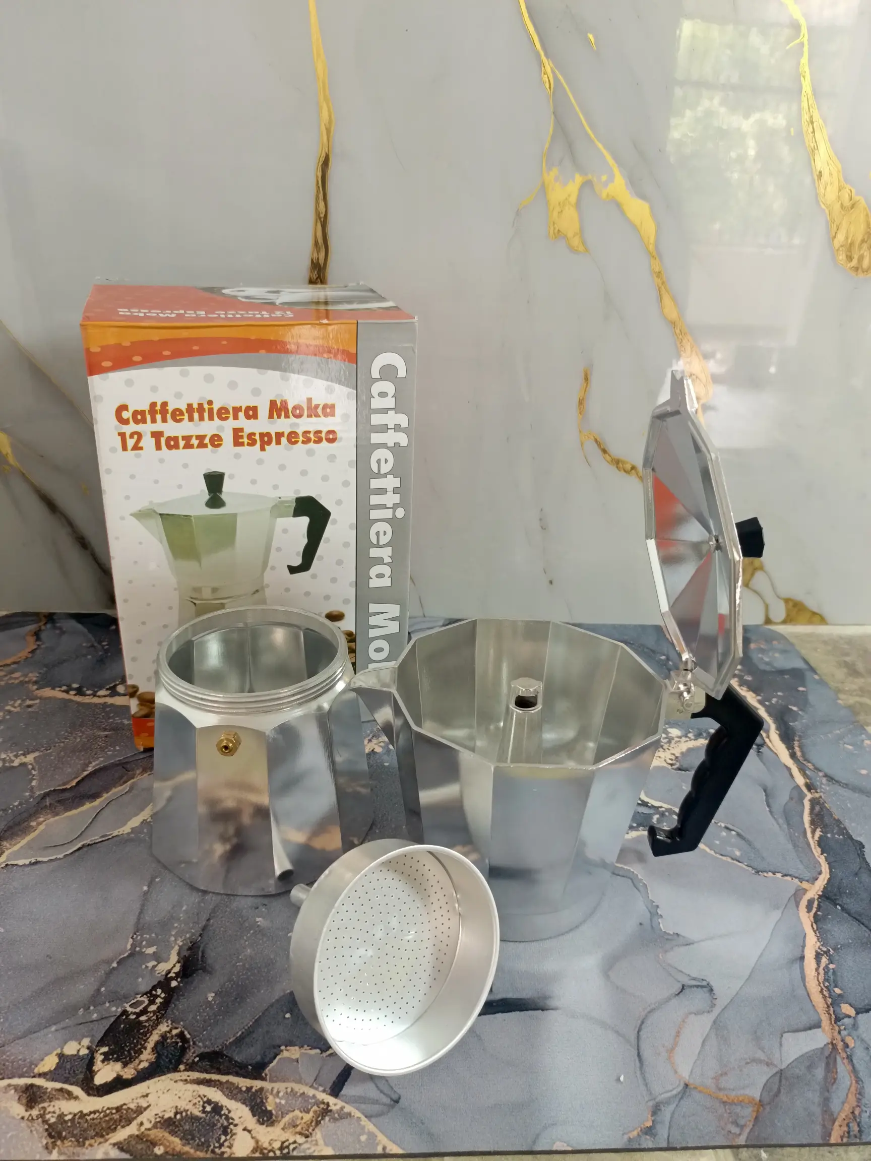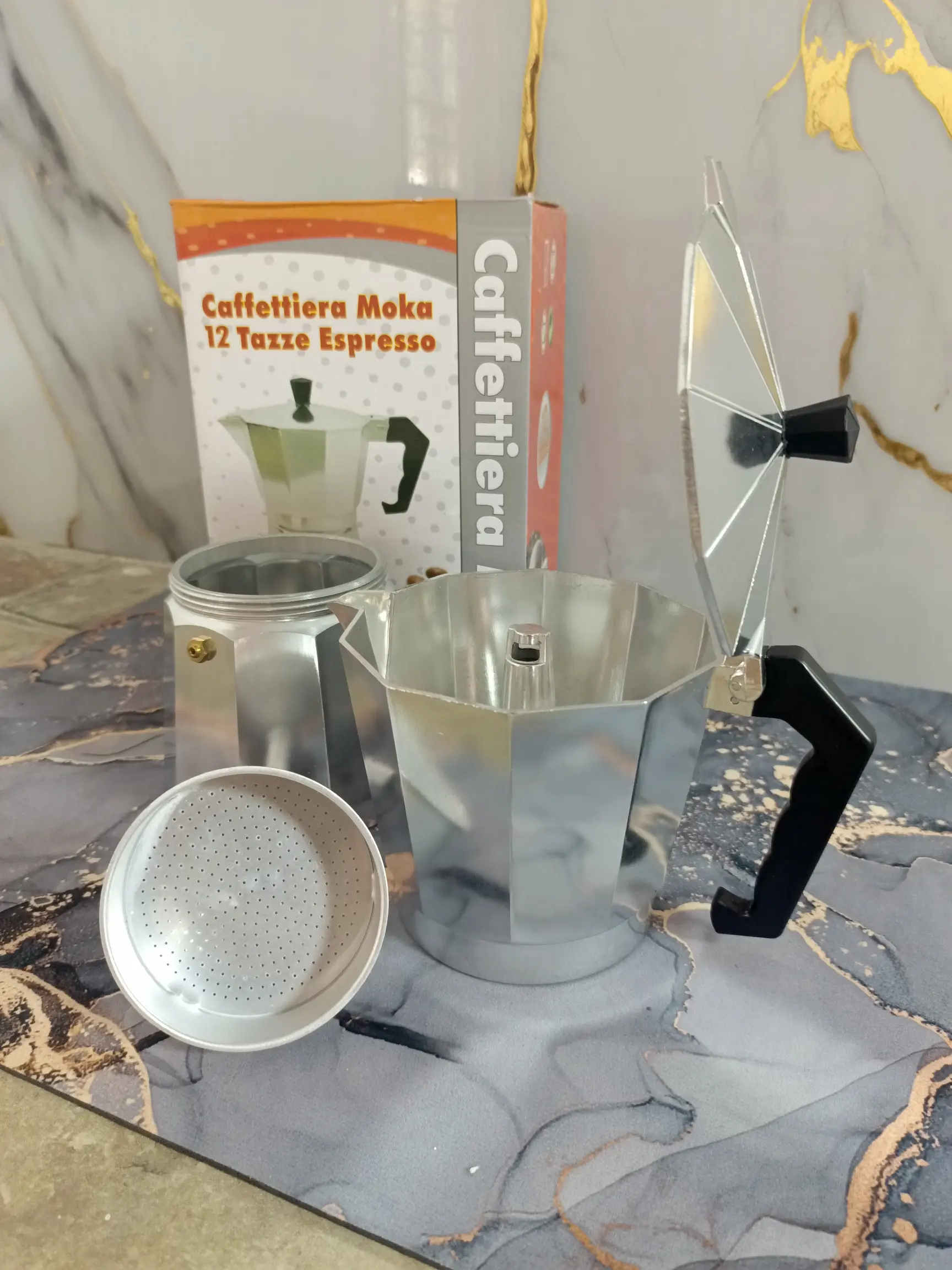 La cafetera clásica moka de 12 tazas ofrece un café intenso y lleno de aroma gracias a su diseño tradicional, ideal para preparar múltiples porciones con facilidad.