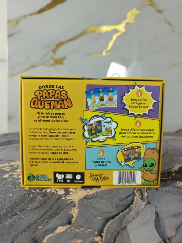 Si buscas un juego que sea fácil de aprender, divertido de jugar y que ofrezca una gran rejugabilidad gracias a las Habilidades Únicas de sus cartas, el Donde las Papas Queman es la elección perfecta. ¡Asegúrate de conseguir tus Papas de Oro antes de que la suerte te abandone y el fuego se encienda!