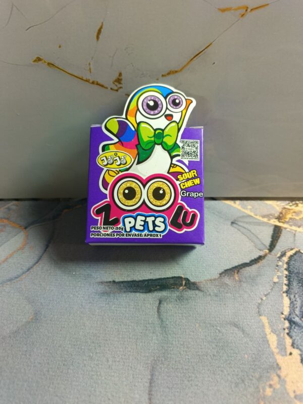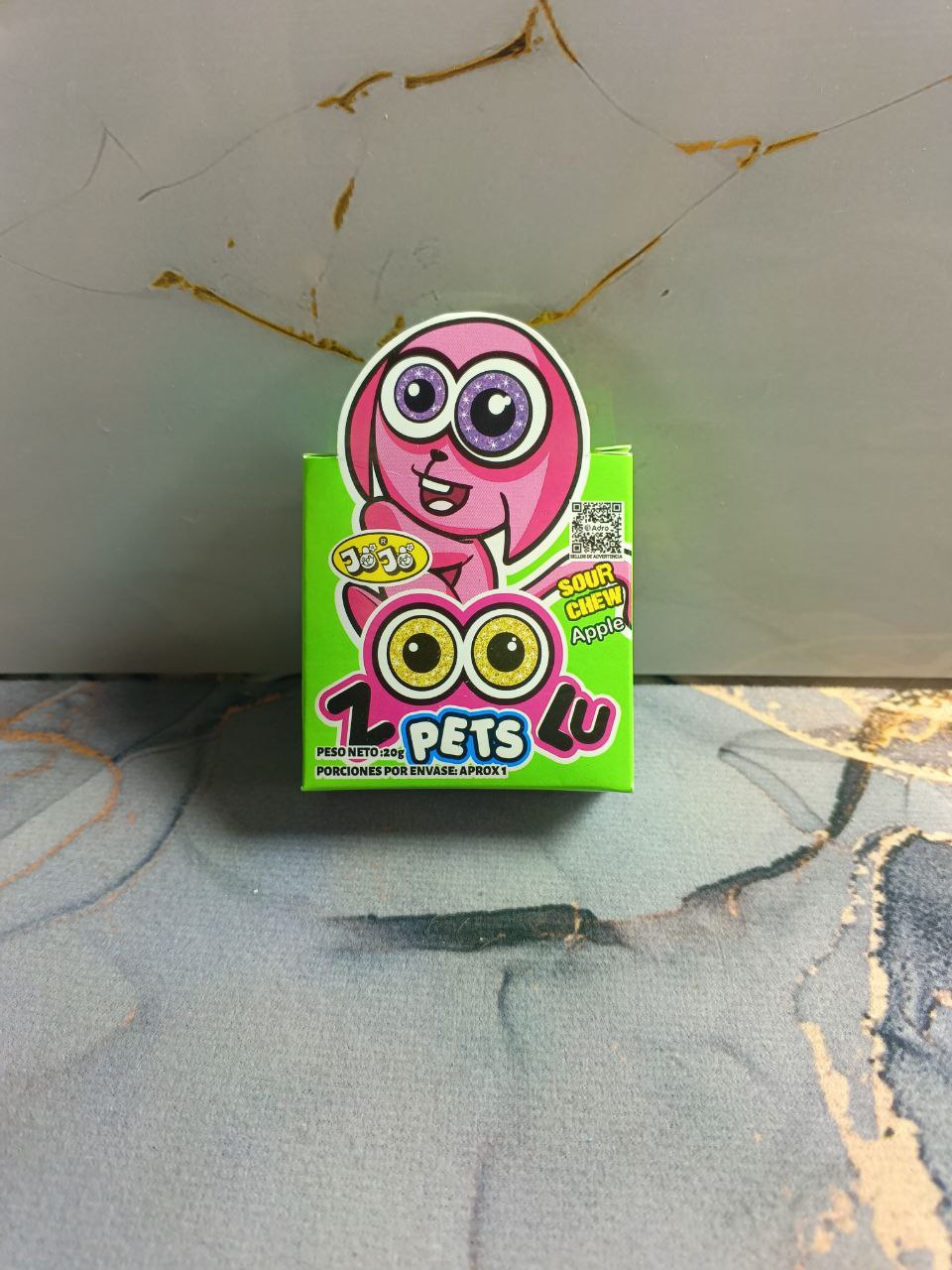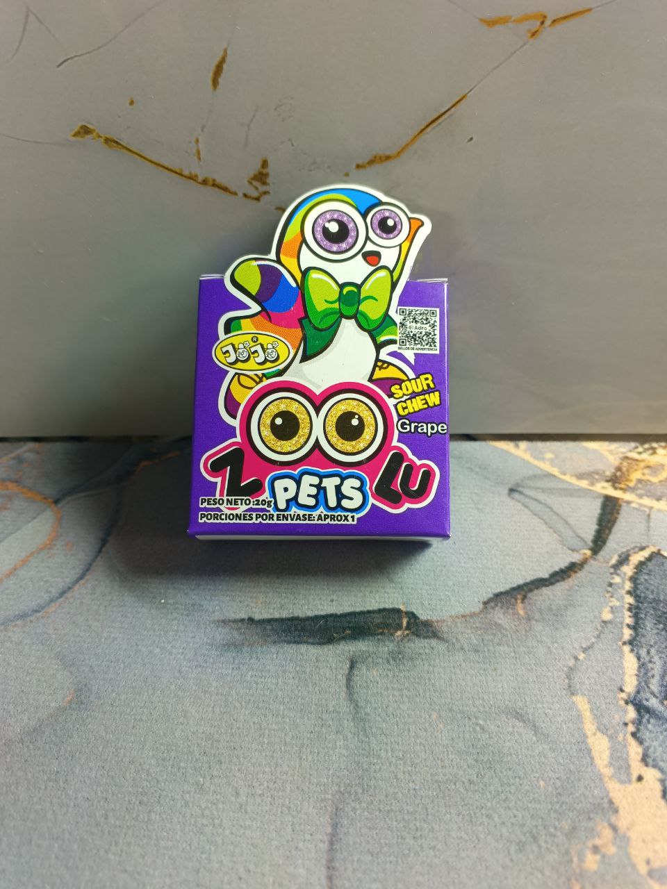 A pesar de su nombre, el dulce Zoolu Pets es un producto elaborado para el consumo humano. No es un artículo para mascotas, sino una golosina pensada para disfrutar como cualquier otro dulce masticable. Su identidad visual juega con personajes tipo “pets”, lo que aporta un estilo divertido y original que lo diferencia fácilmente de otros dulces.