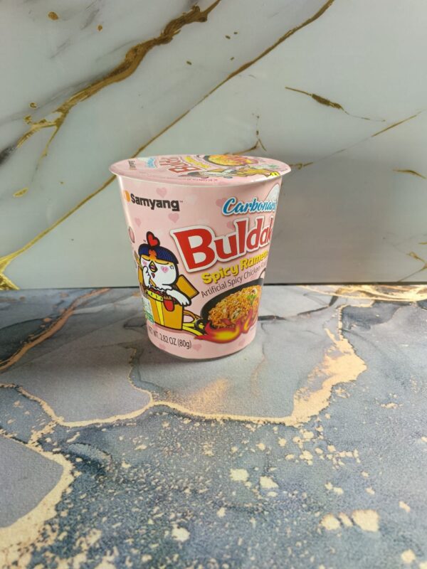 El formato en vaso del ramen buldak carbonara es ideal para llevar a la oficina, disfrutar en casa o incluso preparar en viajes. Su presentación facilita la preparación sin necesidad de utensilios adicionales, manteniendo la comodidad sin sacrificar sabor.