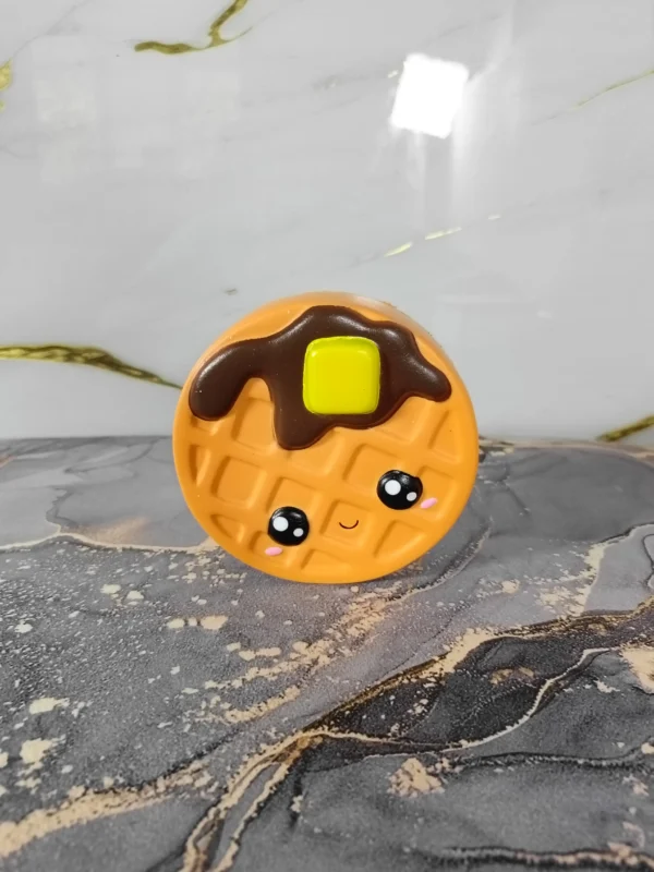 El Pancake Apilado: Este squishy recrea la esponjosidad de un pancake recién hecho, a menudo decorado con un toque de “mantequilla” o un drizzle de “jarabe”. Es el compañero ideal para tus mañanas.